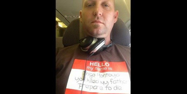 "Numele meu este Inigo Montoya. Mi-ai omorat tatal. Pregateste sa mori", scria pe tricoul lui Wynand Mullins, care s-a imbarcat la bordul unei aeronave Qantas la Sydney. Ceilalti pasageri s-au plans ca se simt amenintati de mesajul de pe articolul vestimentar, care este o replica foarte cunoscuta din filmul-cult "The Princess Bride".